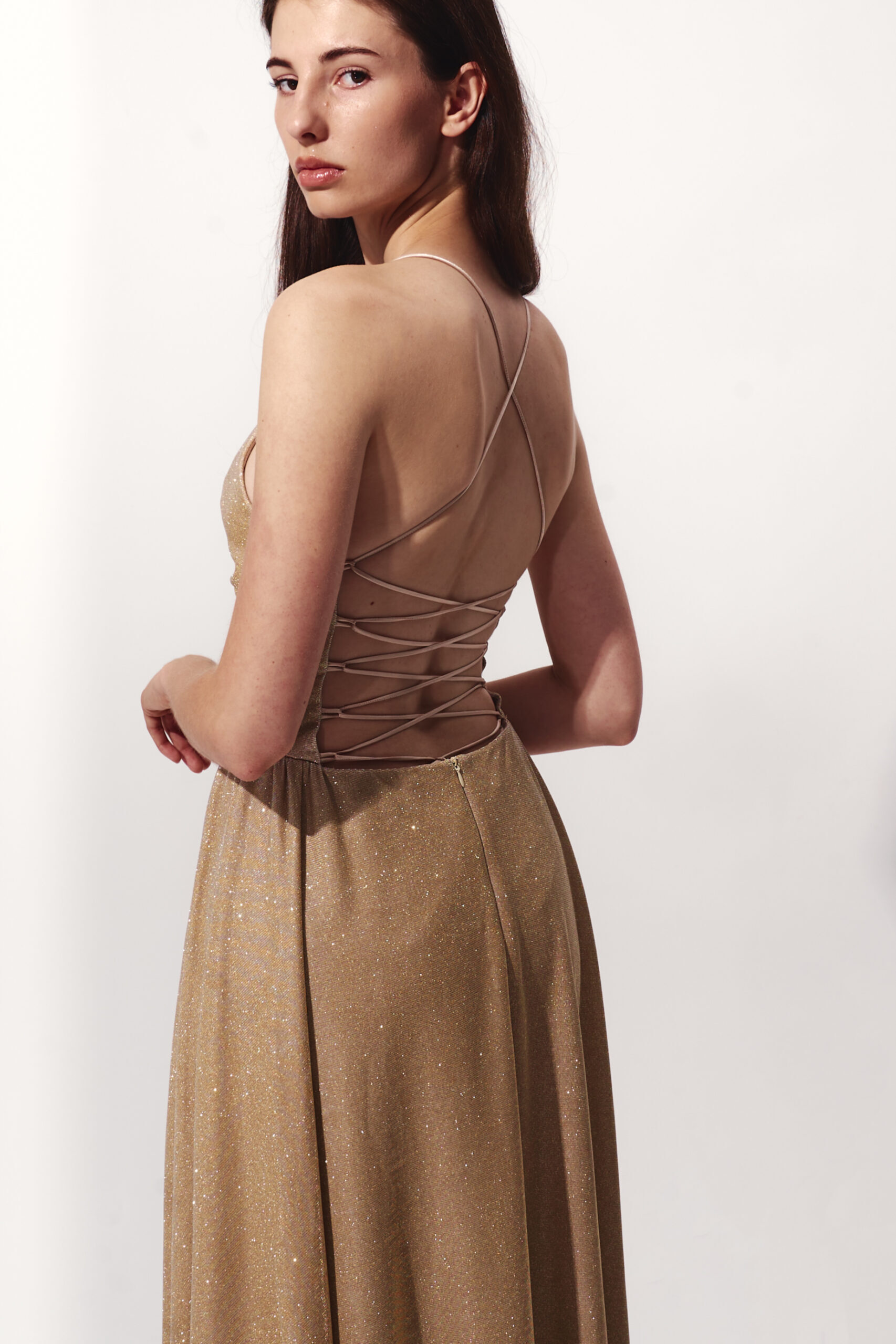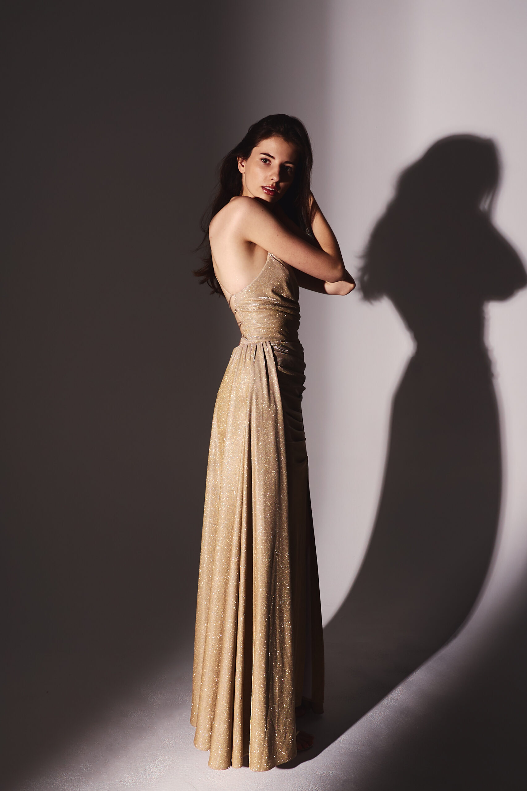 Źródłem inspiracji tej sukienki był świecący kwiat, którego blask i delikatność zostały subtelnie przeniesione do każdego detalu. To kreacja, która sprawi, że rozbłyśniesz na swojej uroczystości, przyciągając uwagę i zachwycając wszystkich wokół. Dodatkowo, oferujemy możliwość uszycia sukienki idealnie na miarę – wystarczy, że podasz nam swoje wymiary, a my zadbamy o to, by pasowała perfekcyjnie i podkreślała Twoje atuty.