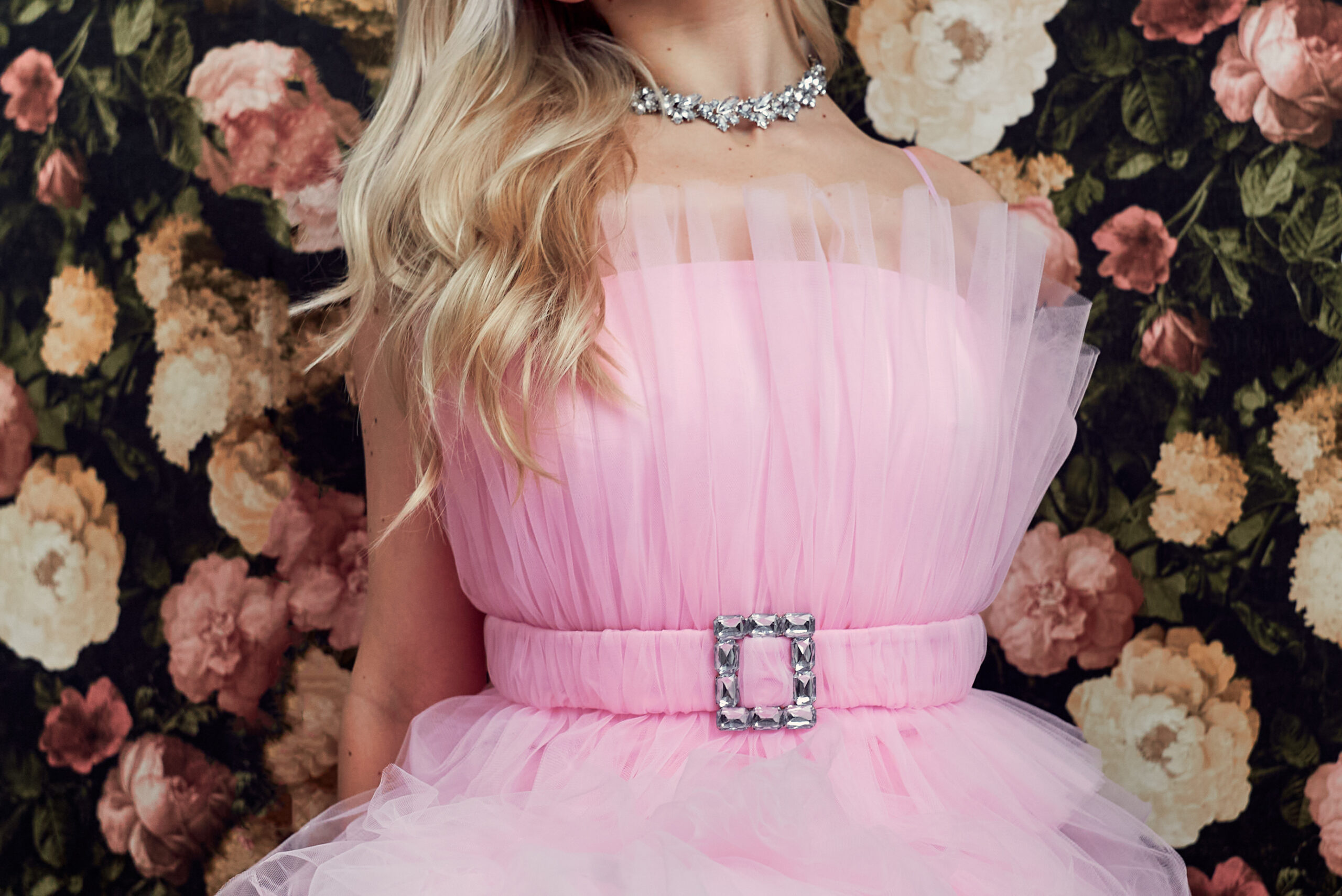 Tiulowy komplet został stworzony dzięki inspiracji delikatności i lekkości firanki. Spódnica i top odznaczają się charakterystycznymi cechami firanki, emanując delikatnością dzięki dobranym materiałom. Wykorzystane zostały lekkie, przezroczyste tkaniny, które pozwalają skórze subtelnie migać spod warstw materiału, podkreślając jednocześnie romantyczny charakter całej kreacji.